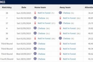 英超:诺丁汉森林1-1切尔西