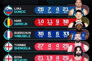 体育资讯9月3日讯 男篮欧锦赛结束了又一个比赛日的争夺,今天,欧锦赛官推晒出了昨日的球员高光表现。