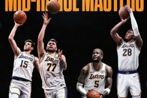 本赛季至今湖人有四名球员中投命中率在联盟前十(至少出手30次)。