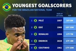 德转列巴西队史最年轻进球者: