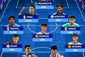 体育资讯10月10日讯 U20世界杯正在进行之中,多名小将展示出了非凡的才华。德国转会市场盘点了本届赛事身价最高阵,莫拉、门多萨在列。